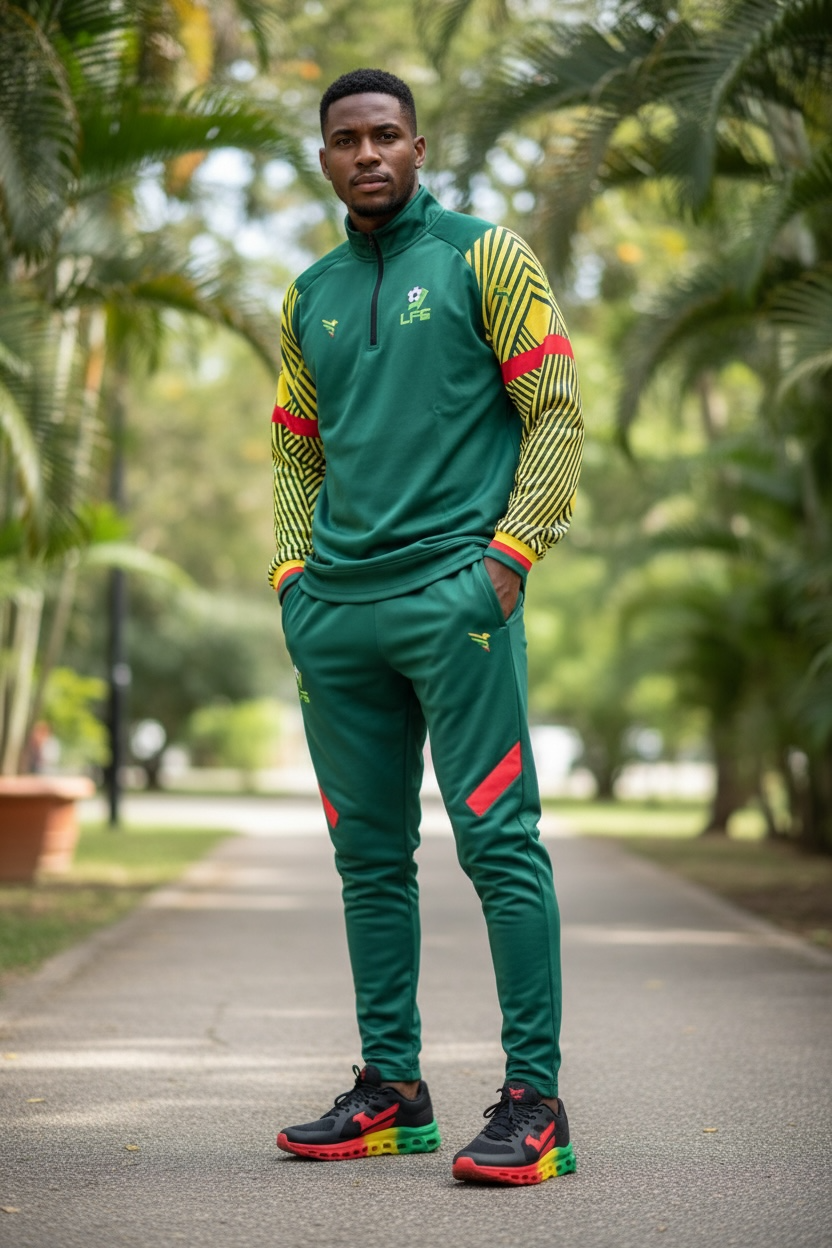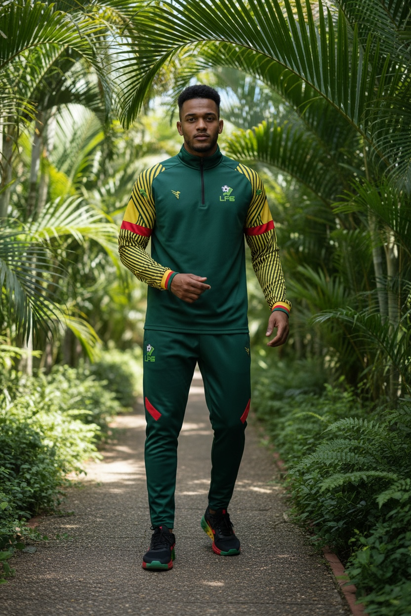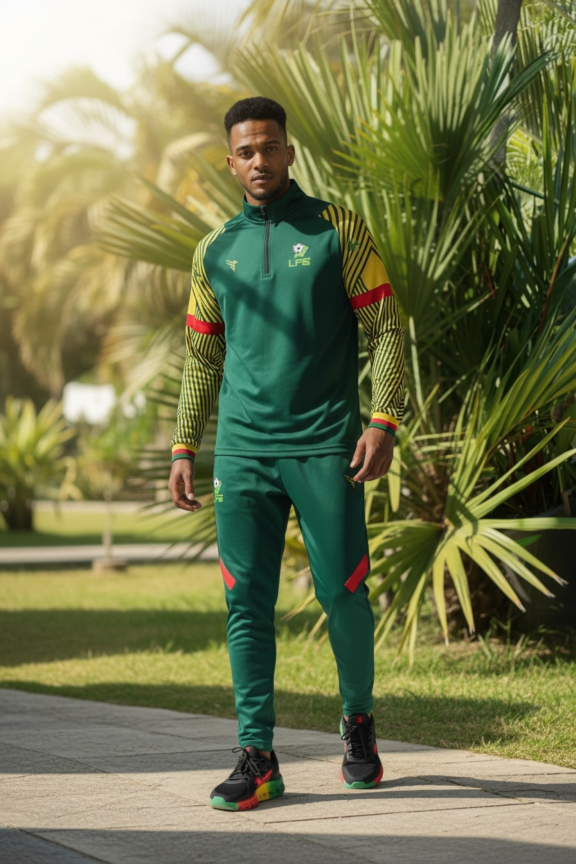 Le haut de sortie officiel de la sélection Guyane – Présentation Elite est conçu pour représenter la sélection en dehors du terrain.