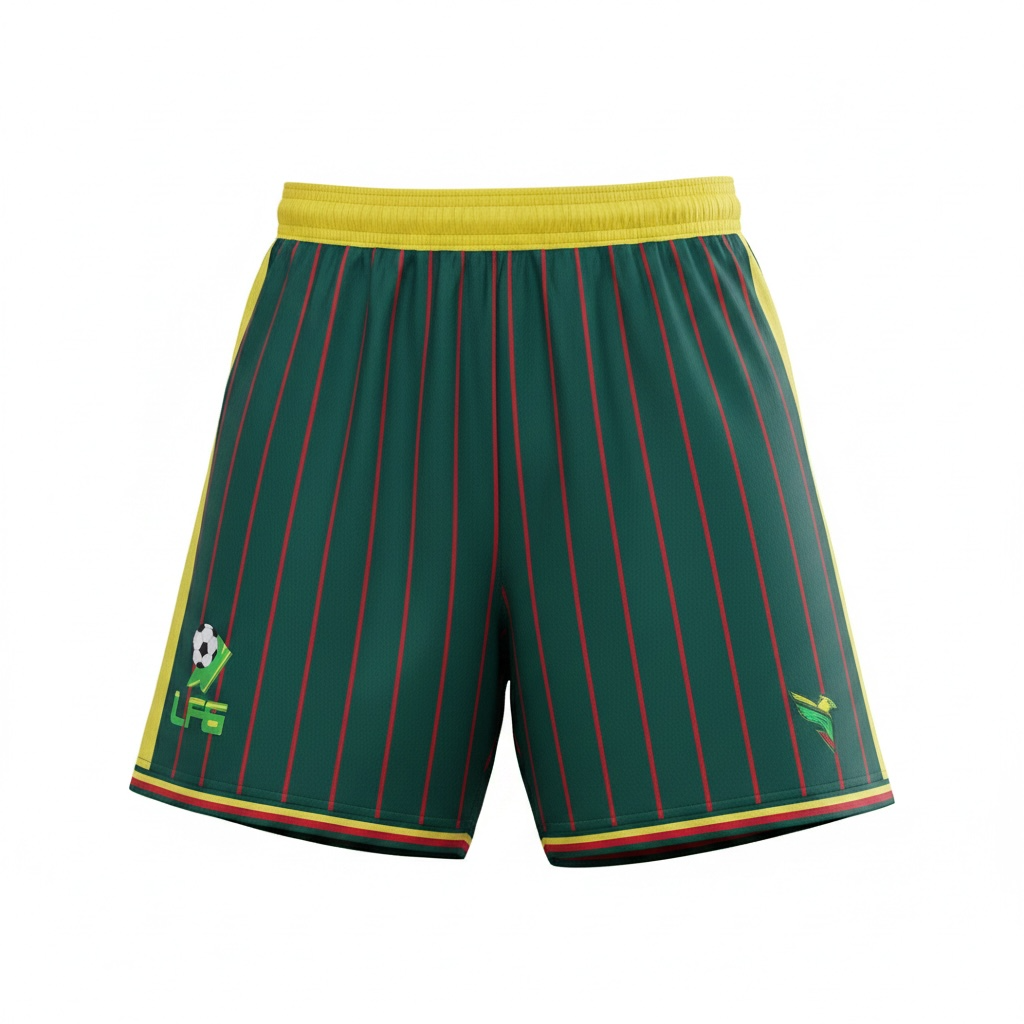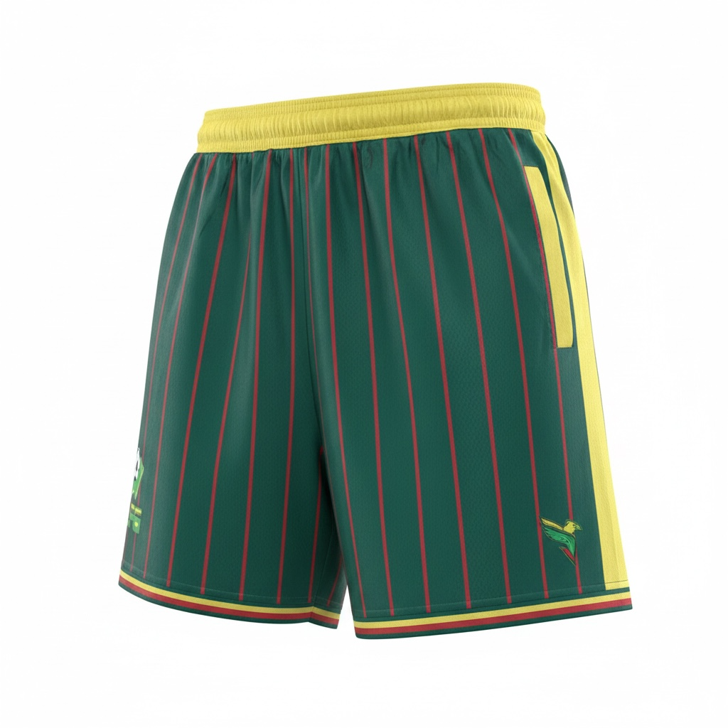 Inspiré du baseball américain et revisité avec l’identité guyanaise, ce short se distingue par :