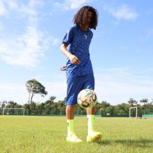 Entrer sur le terrain comme un leader Avec la REBEL, c’est comme être enfant sur terrain de jeu . Et être notre icône : la REBEL fait son entrer, avec son design élégant et ses matériaux innovants qui profitent aussi bien au joueur. La REBEL offre une sensation maximale de confort et d’extensibilité. Avec son talon résistant et ses crampons coniques, la semelle extérieure légère vous offre une liberté de mouvement totale pour que vous vous sentiez comme un roi balle au pied.