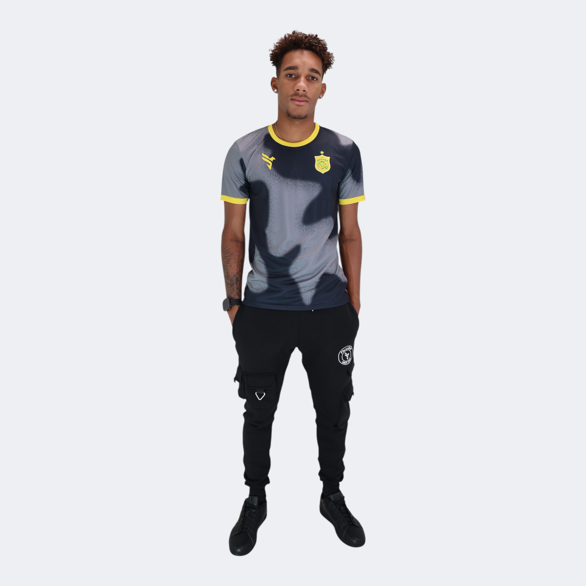 Avec son design inspiré des couleurs historiques de la Guyane (jaune, vert, rouge) et son effet spray artistique, ce maillot est l’expression d’une identité forte et moderne.